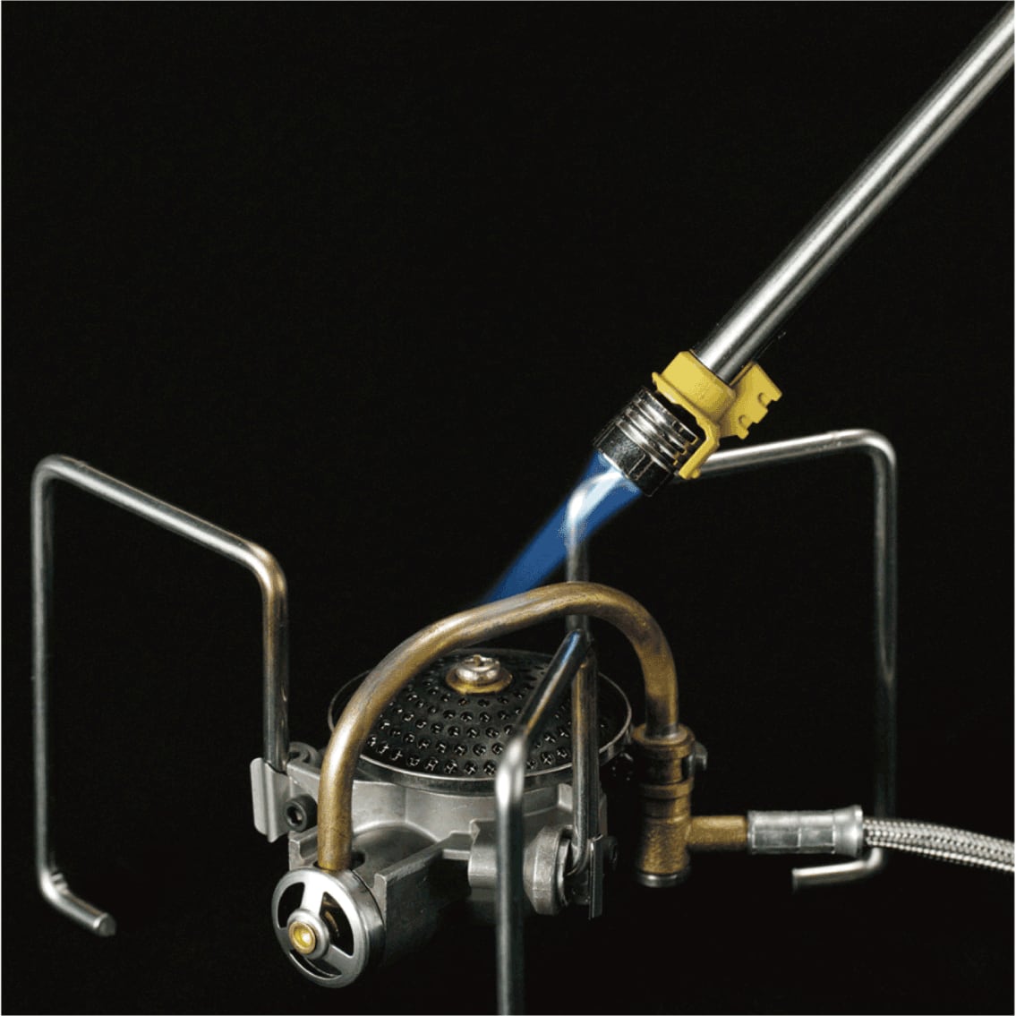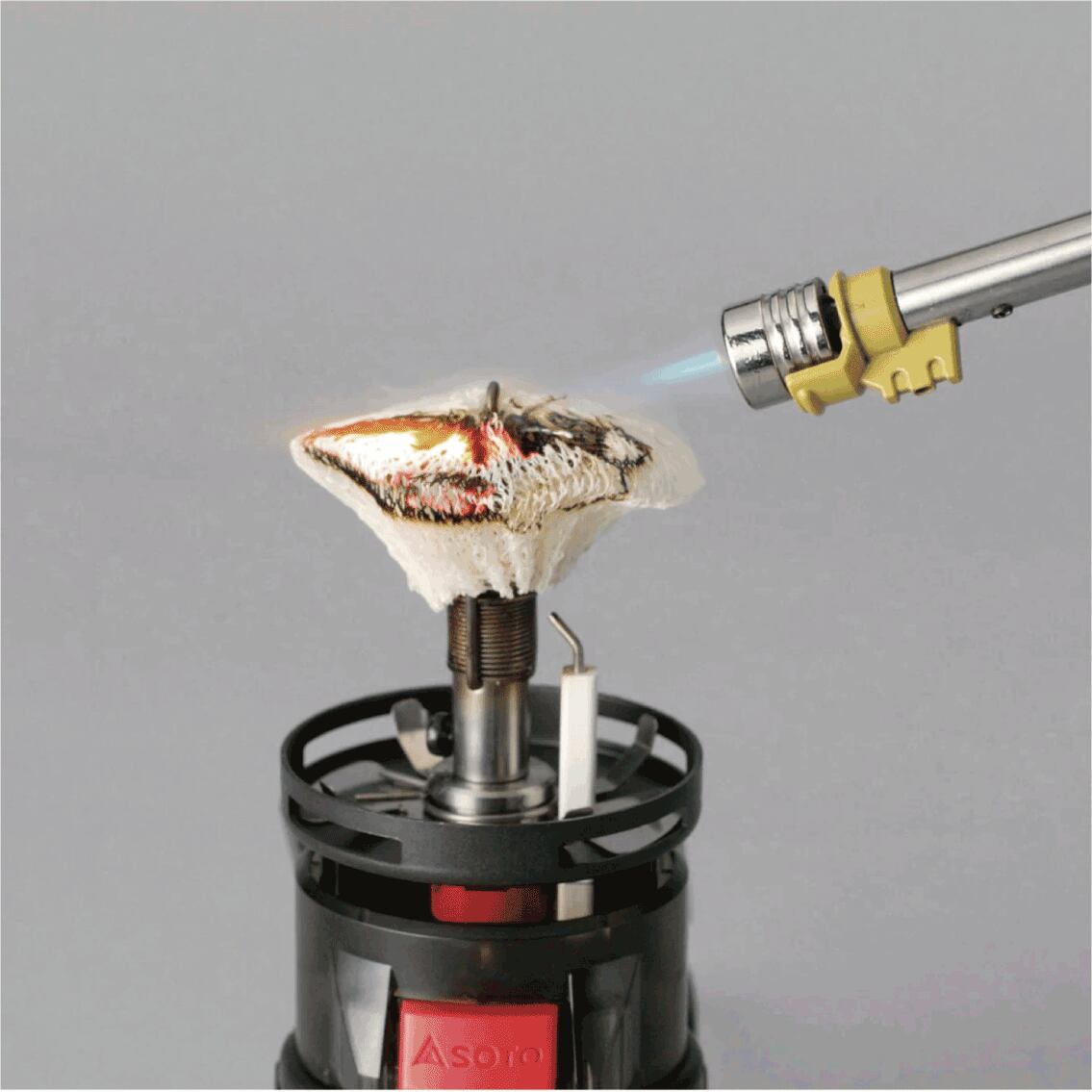 火口がのびる小型耐風バーナー。