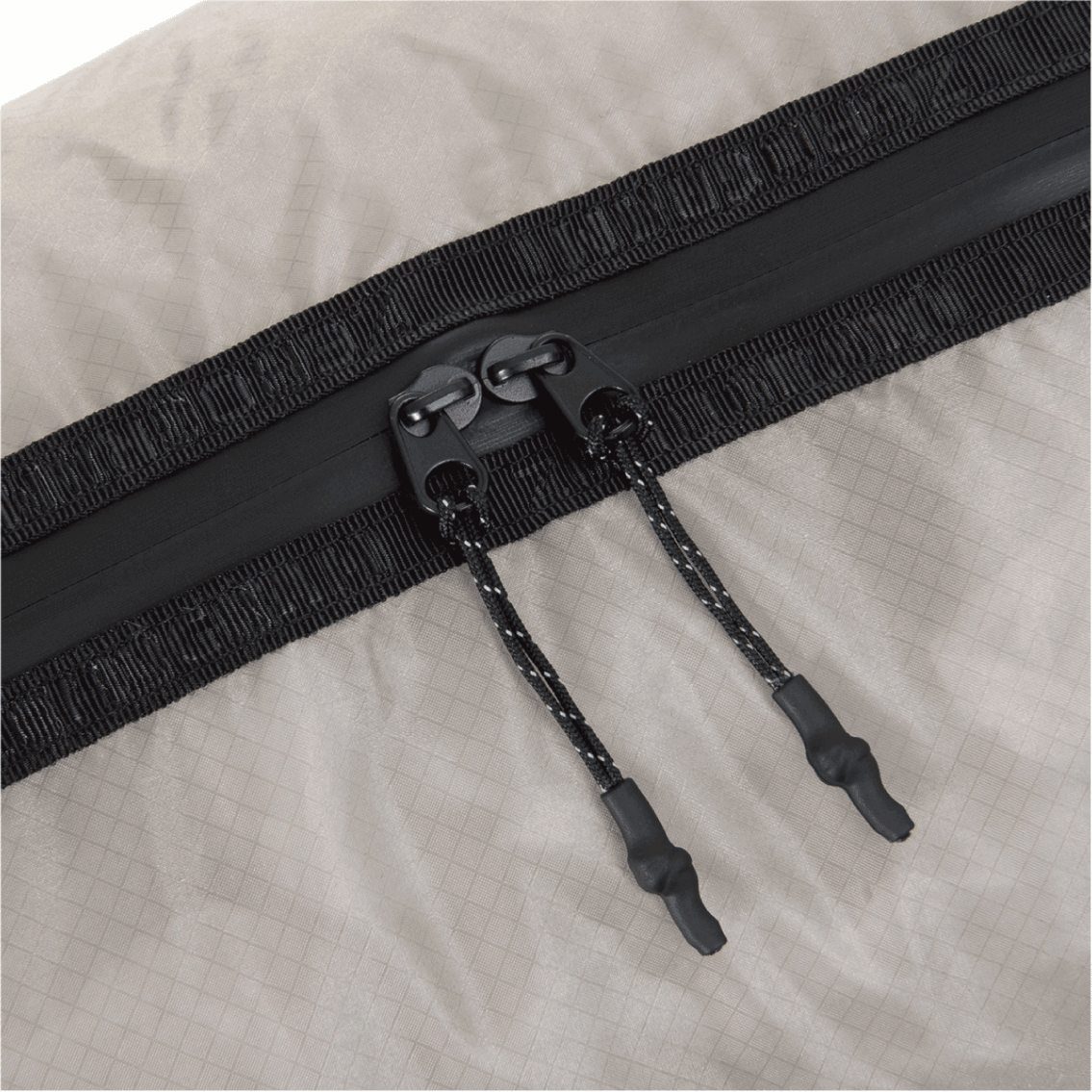 防水ジッパーで外部からの湿気を防ぎつつ濡れたギアの収納にも対応します(完全防水ではありません)。