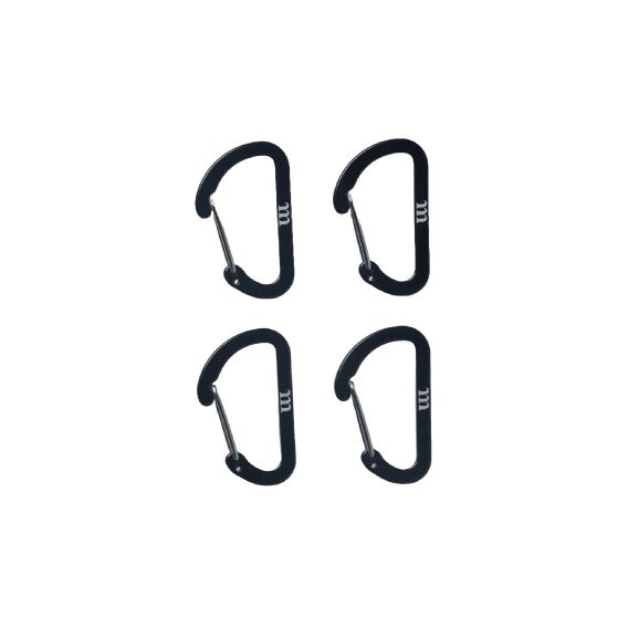 mロゴがレーザーマーキングされたブラックカラーのカラビナです。