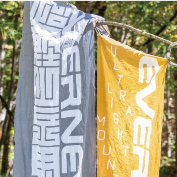 「超軽量山岳用品」と江戸角文字で染抜きました。