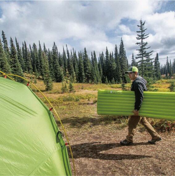 リサイクルされた20Dリップストップフェイス生地を採用し、“myclimate”によりカーボンニュートラルを認定された超軽量でコンパクトなスリーピングマット。