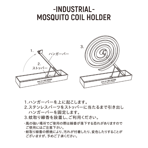 素材を活かして無骨な雰囲気に仕上げた蚊取り線香ホルダー。