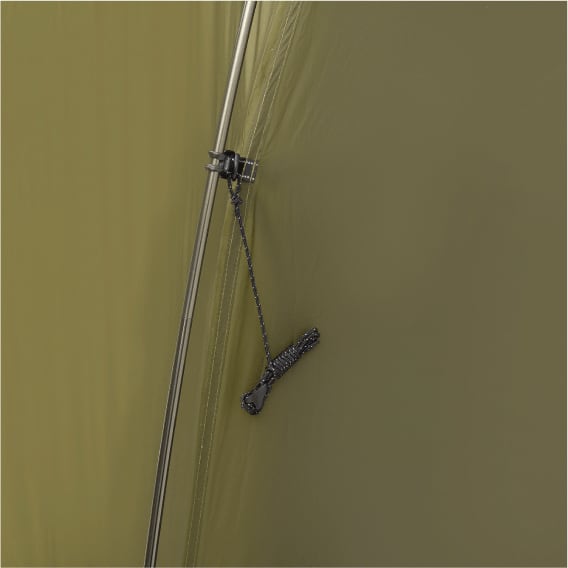 ポール中央のオリジナルハブシステムは、テントを完全に均等なバランスで吊り下げ、強いテンションで張ります。
